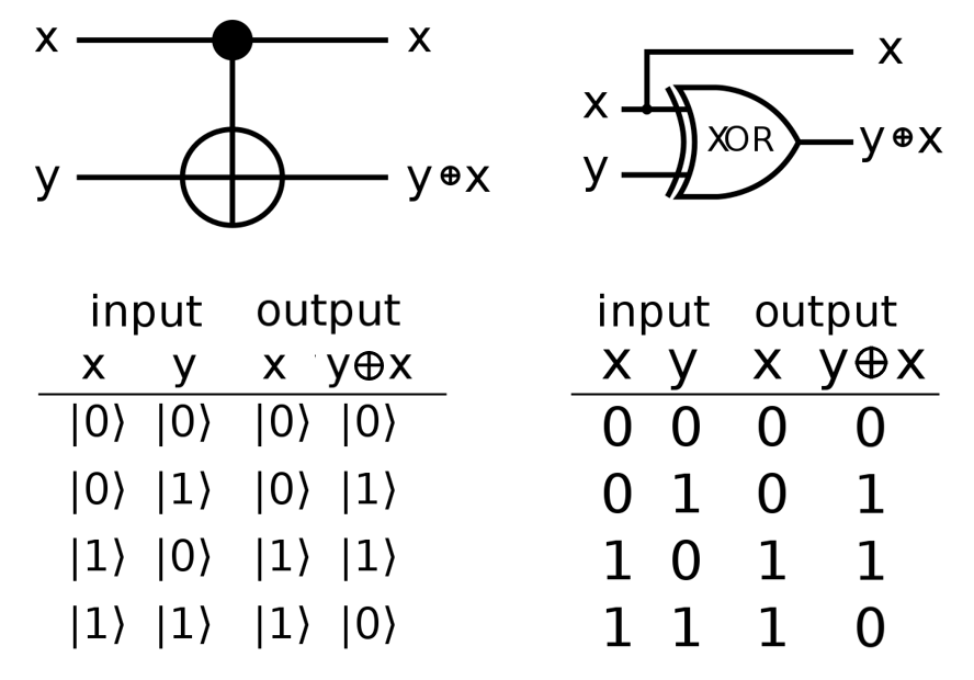 CNOT 게이트는 이러한 가역적 XOR 게이트의 양자 논리 게이트 버전입니다.